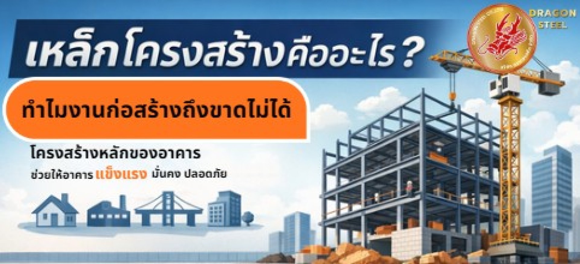 เหล็กโครงสร้าง คือวัสดุหลักที่ใช้รับน้ำหนักและถ่ายแรงของอาคารหรือสิ่งปลูกสร้าง ทำหน้าที่เป็น “โครงกระดูก” ของงานก่อสร้าง ไม่ว่าจะเป็นบ้าน โรงงาน โกดัง สะพาน หรืออาคารสูง เหล็กโครงสร้างช่วยให้อาคารแข็งแรง มั่นคง และปลอดภัยในระยะยาว